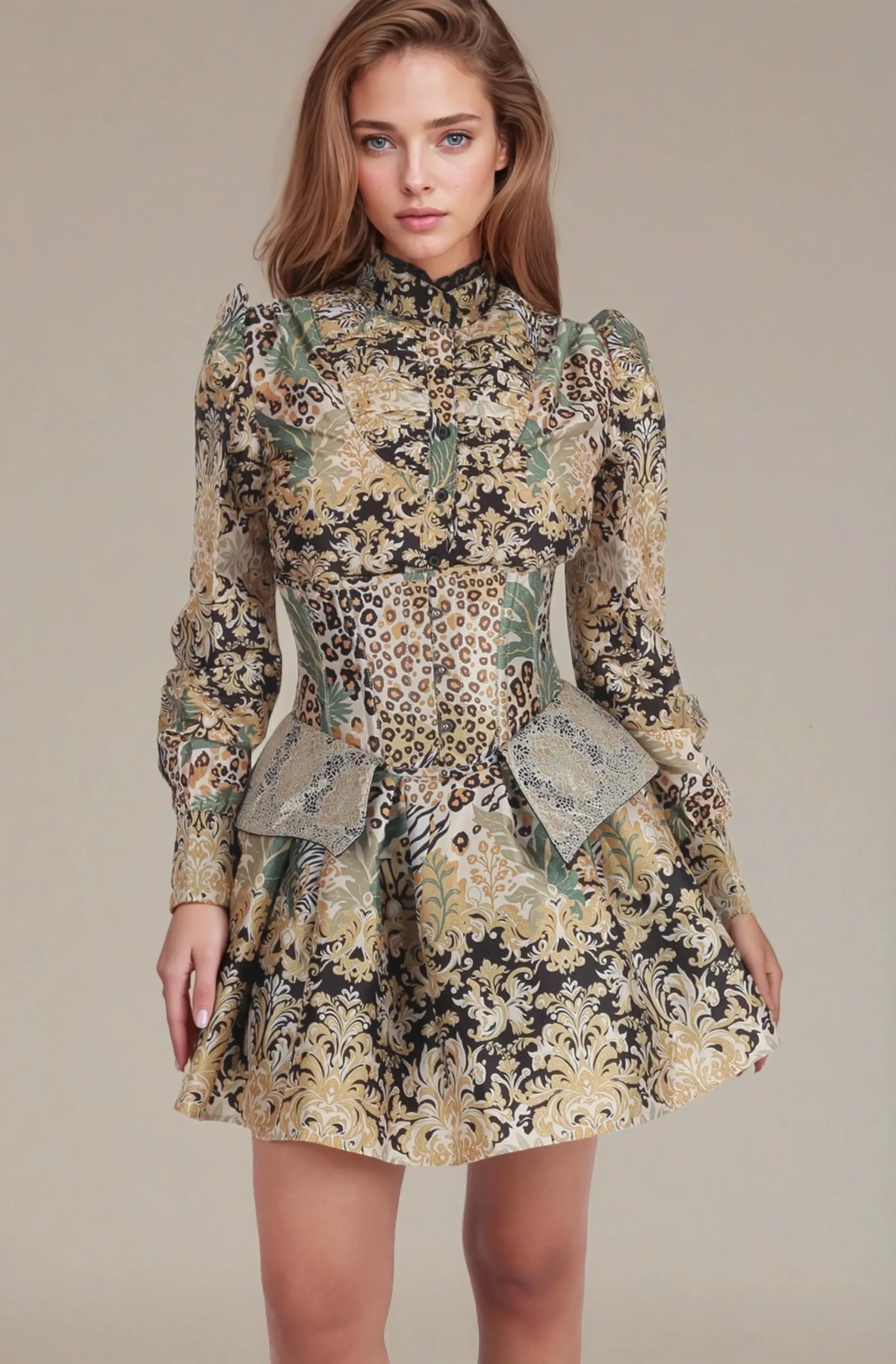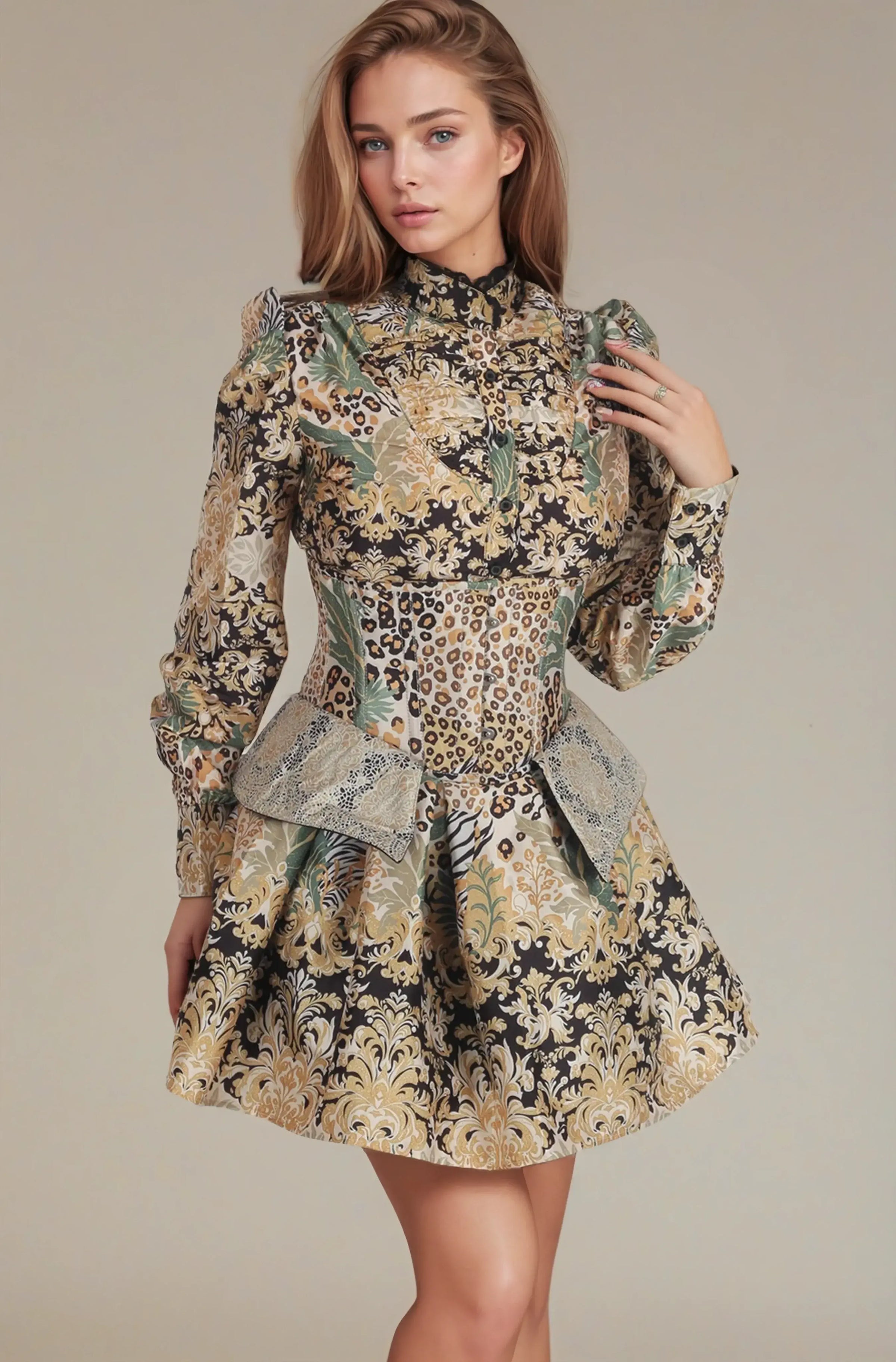 Unleash your wild elegance with our New LUXE NOIR Three-Piece Costume Set in the Safari Luxe Edition. This bold and adventurous design combines exotic leopard prints with opulent golden baroque patterns and lush botanical accents, creating a powerful statement piece that embodies both strength and sophistication.
