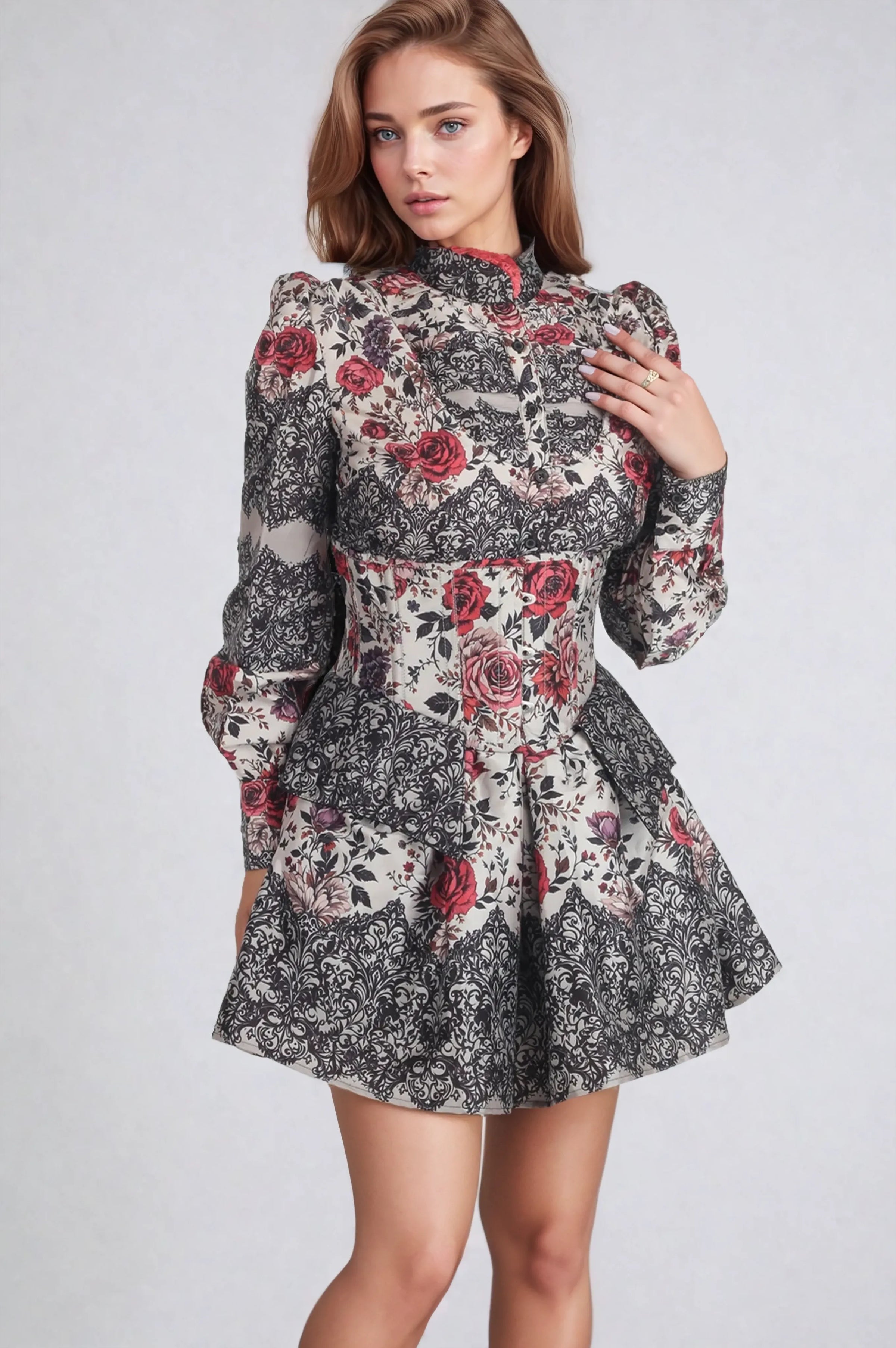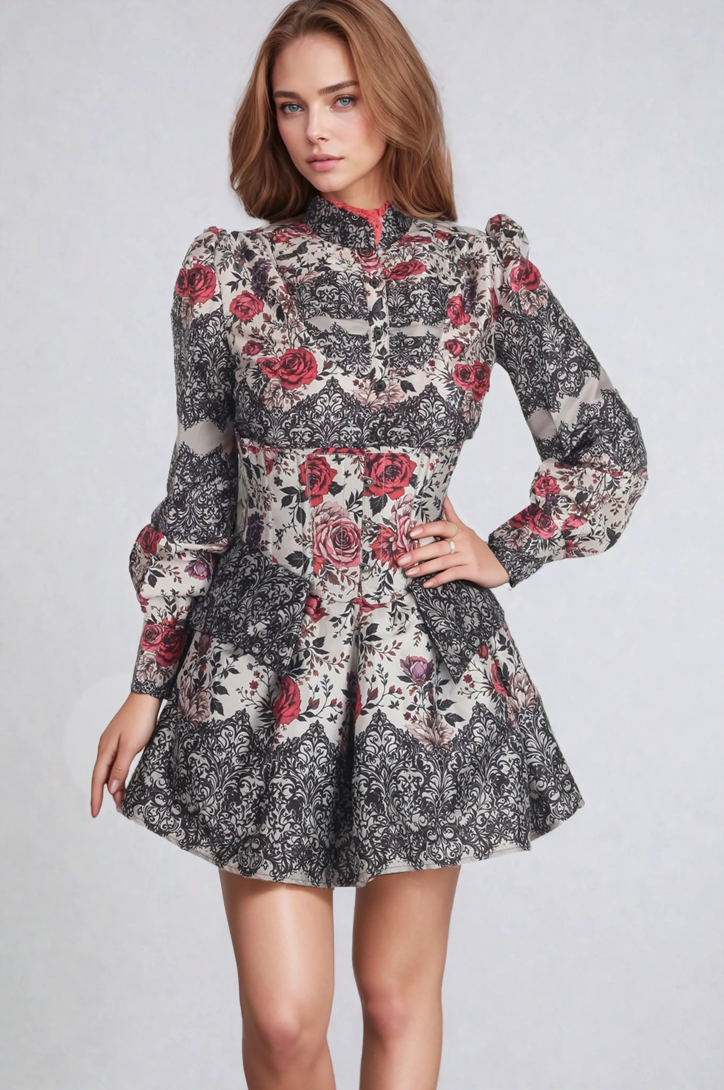 Indulge in the timeless allure of romance with our New LUXE NOIR Three-Piece Costume Set in the Crimson Lace Edition. Featuring a refined blend of vibrant red and blush roses over a soft ivory base, this enchanting design is elevated by dramatic black lace-inspired baroque patterns, creating the perfect fusion of passion and elegance.