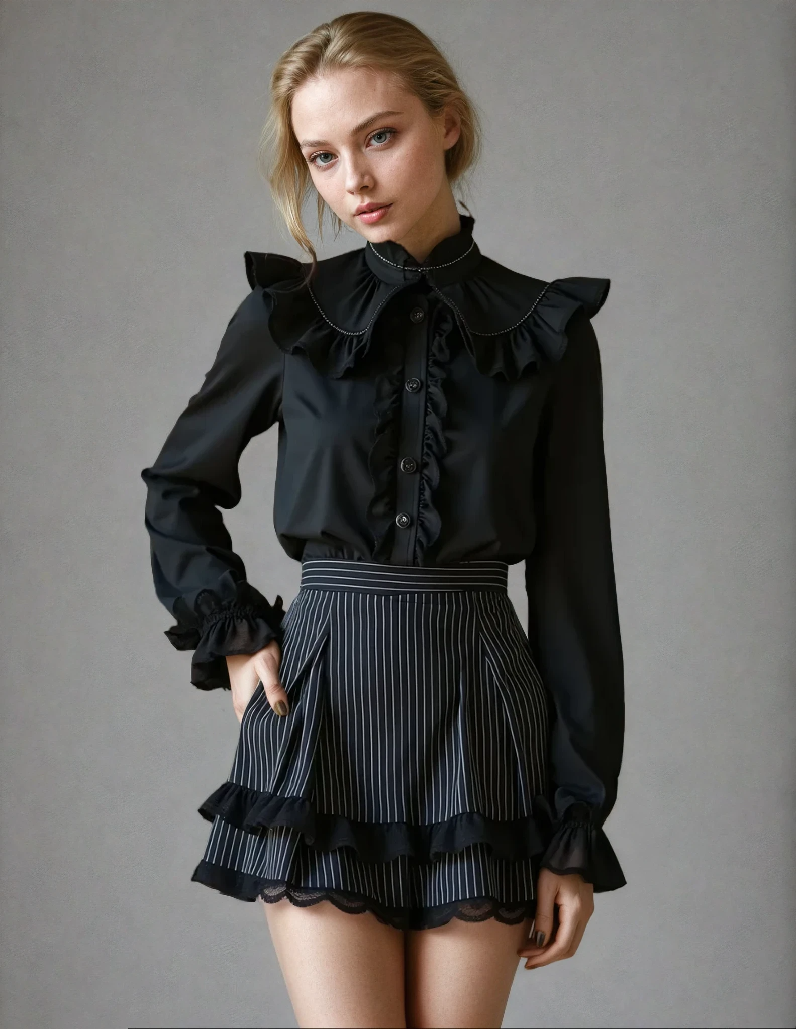 Experience comfort and style with our Jenesse Pinstripe Skirt. The pinstripe design and lace trim add a touch of sophistication, while the comfortable fit ensures all-day wearability. Perfect for any occasion, this skirt is a must-have addition to your wardrobe.