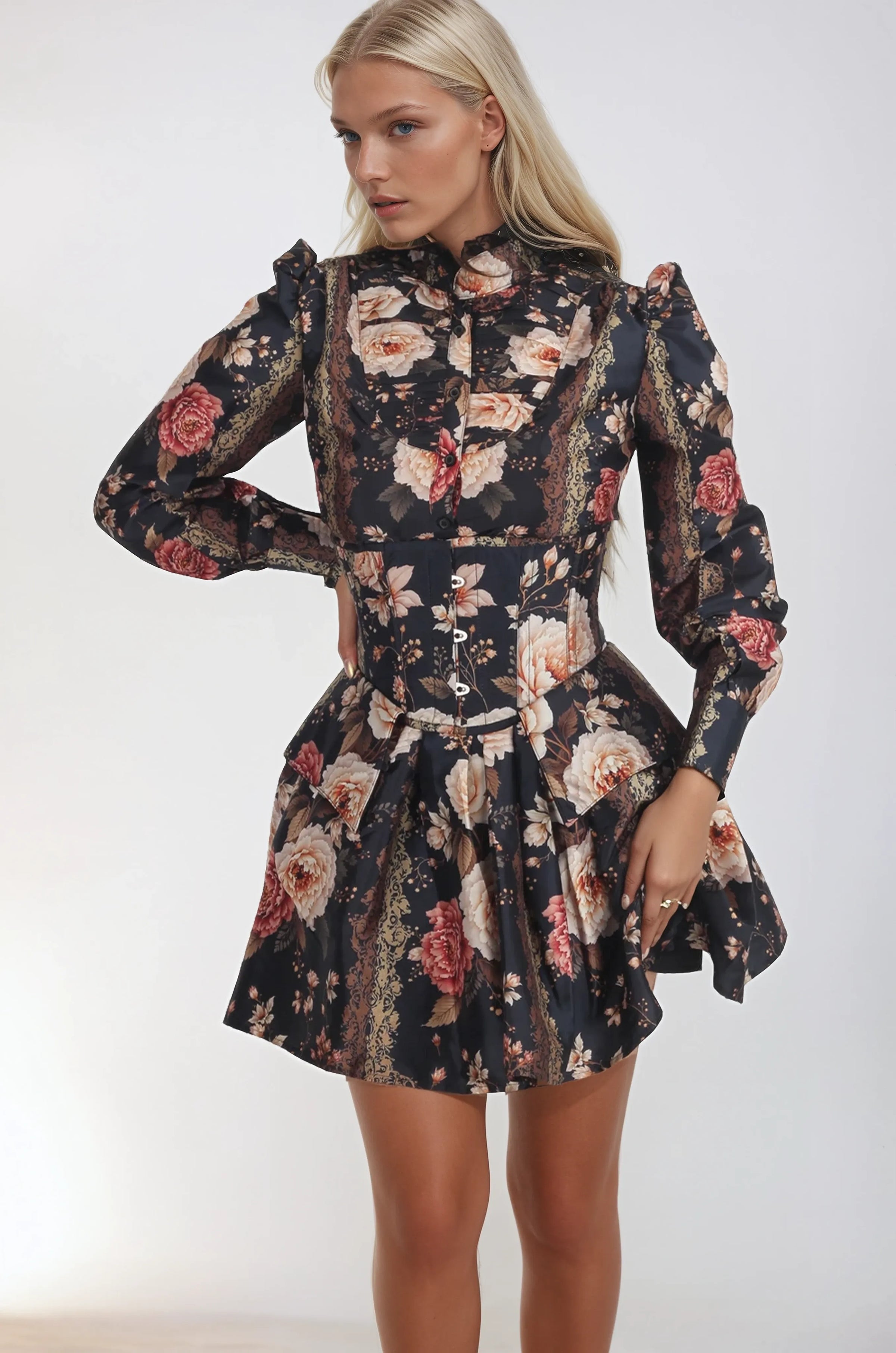 Celebrate timeless elegance with our New LUXE NOIR Underbust Corset in the Victorian Rose Edition. Featuring a deep midnight black backdrop adorned with lavish ivory, blush, and crimson roses, this ensemble perfectly blends romantic floral charm with the grandeur of vintage baroque patterns. Expertly designed with durable steel boning and back lacing to enhance the waistline while ensuring comfort with 100% premium cotton lining. The classic rose print evokes vintage romance, creating a stunning focal point for this regal silhouette.