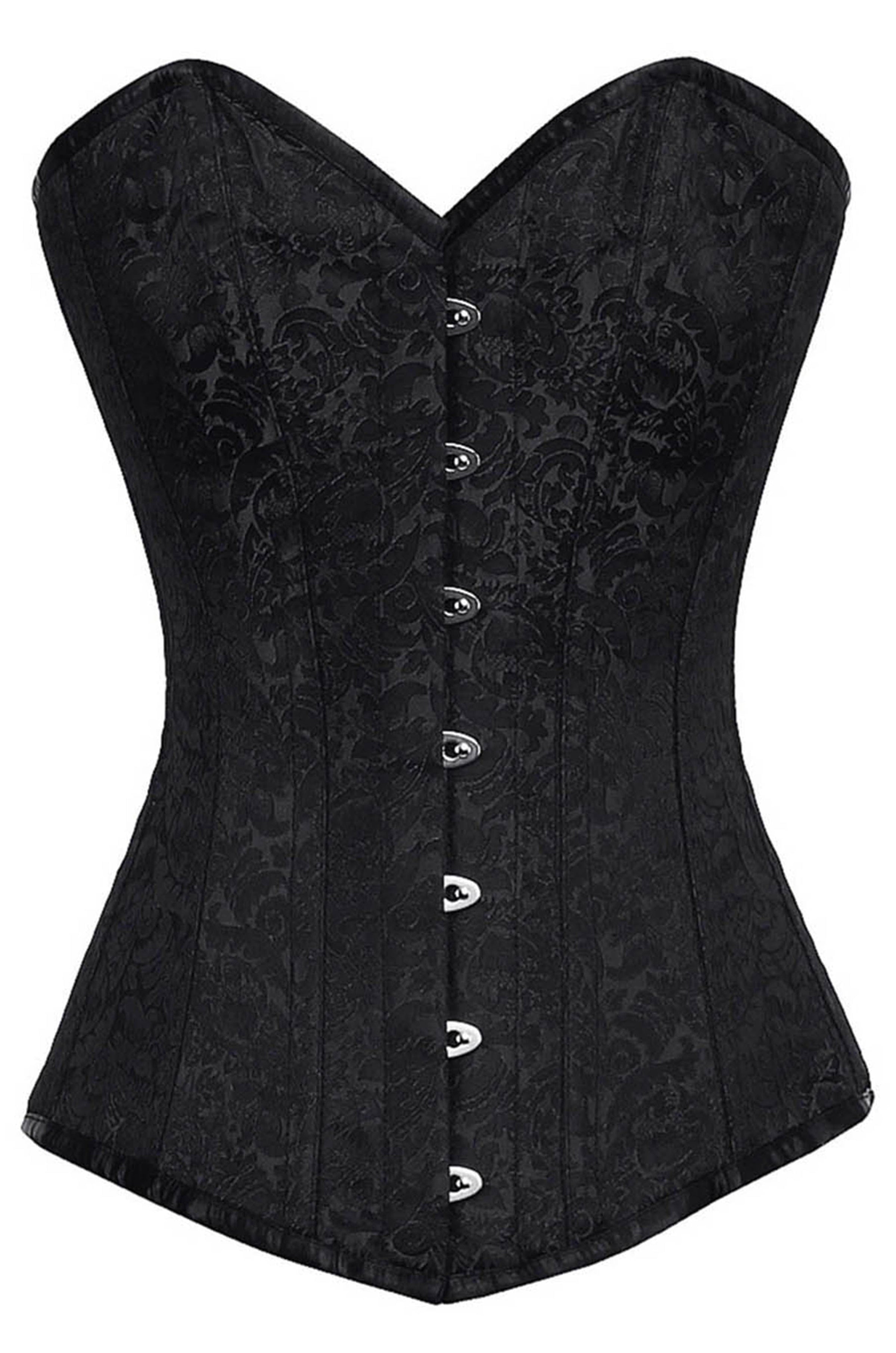 Command timeless elegance in the LUXE NOIR Exclusive Black Brocade Corset, a refined piece that merges gothic allure with classic structure. Crafted from rich black brocade fabric, this overbust corset features an intricate woven pattern that adds subtle texture and depth. Reinforced with spiral steel boning, it offers strong support and a sculpted silhouette. The design includes a flattering sweetheart neckline, a front metal busk closure, and a lace-up back for adjustable cinching. Fully lined with 100% cotton, it ensures comfort while maintaining dramatic shape.