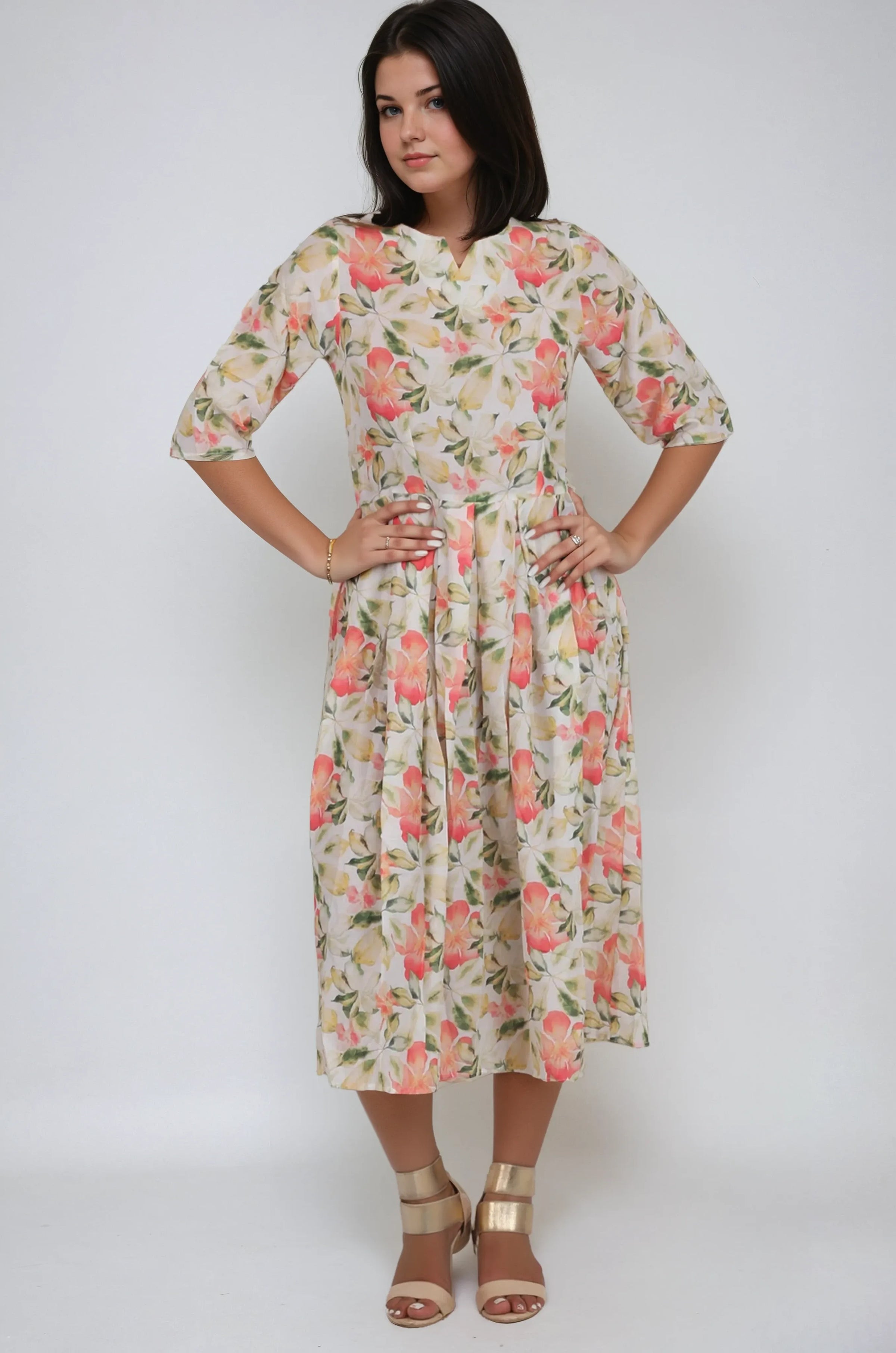 Expertly crafted from soft and breathable cotton muslin, the Kenna Round Neck Print Dress is perfect for all-day wear. Its lightweight fabric ensures comfort, while the round neck adds a touch of elegance. Make a statement with its eye-catching print.