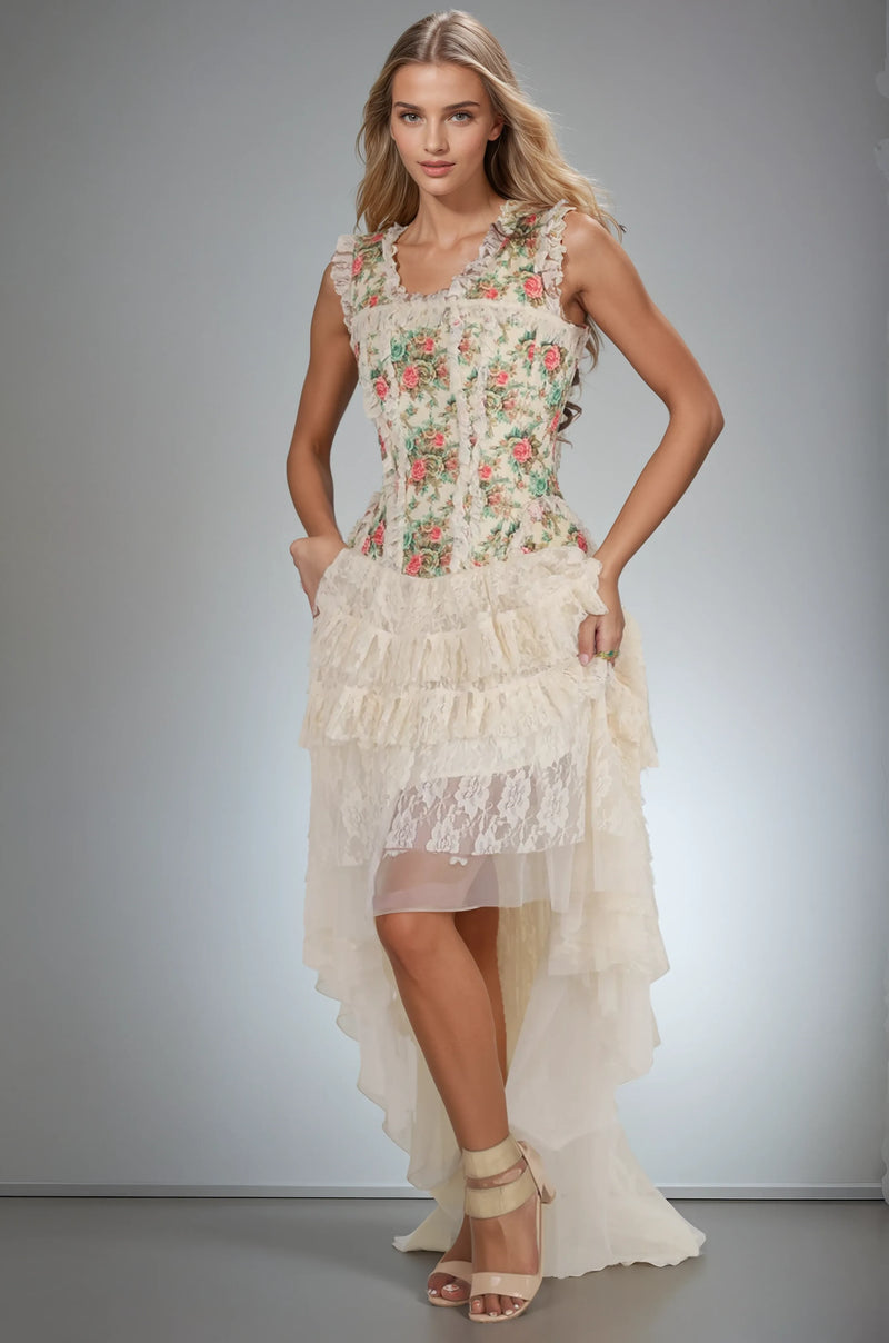 Eyre Victorian Inspired Skirt with Floral Lace Trims