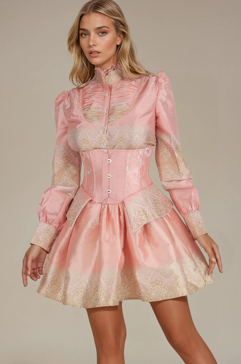 Logan Pink & Beige Floral Ensemble Corset Dress