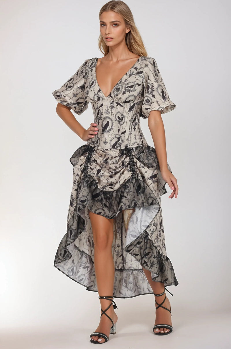 Deann Tiny Birds on Cherry Branch Corset Dress