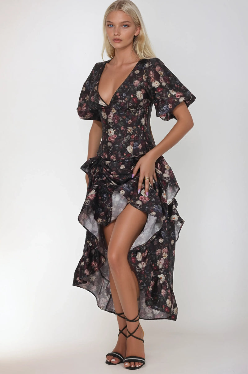 Ileene Gothic Floral Custom Made Corset Mini Dress