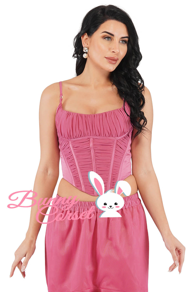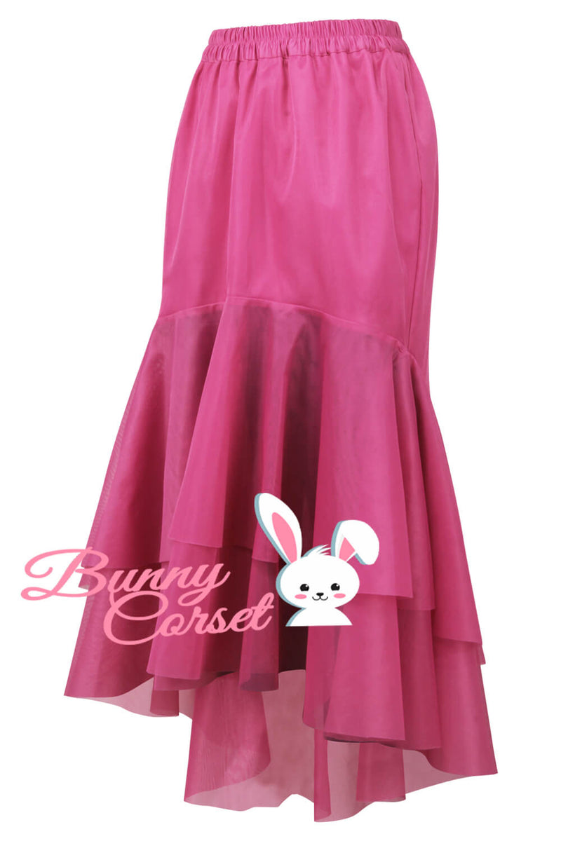 Josie Dark Pink Satin & Mesh Net Elasticated Skirt