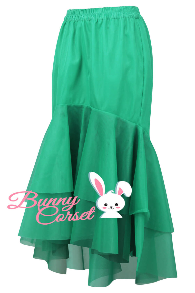 Mackenzie Green Satin & Mesh Net Elasticated Skirt
