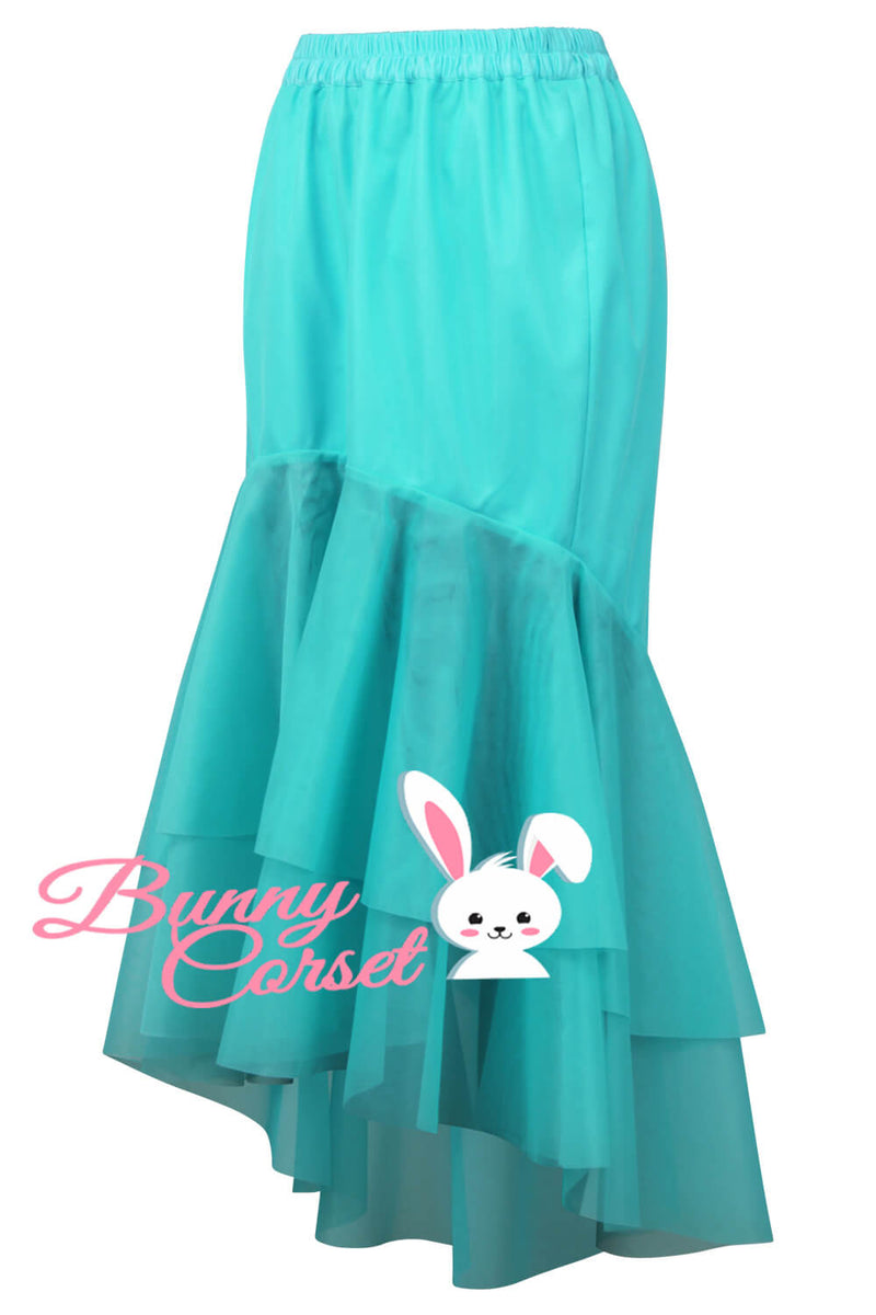 Isabelle Light Blue Satin & Mesh Net Elasticated Skirt