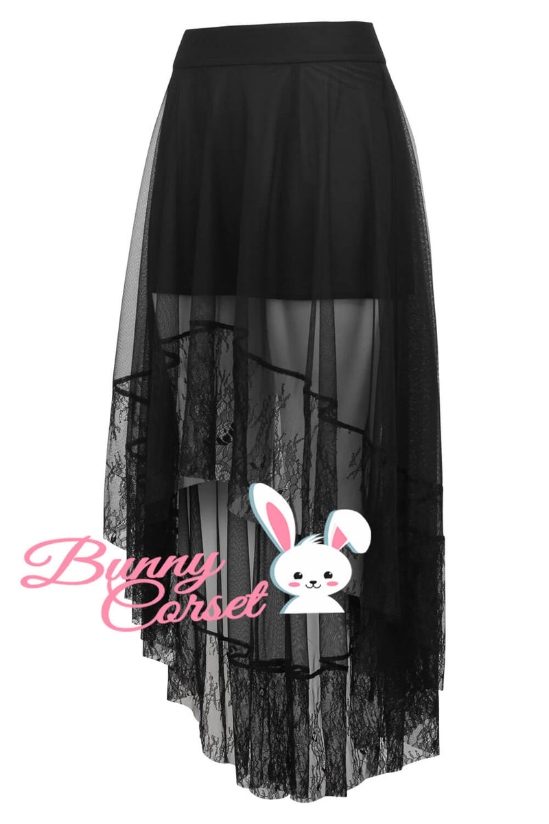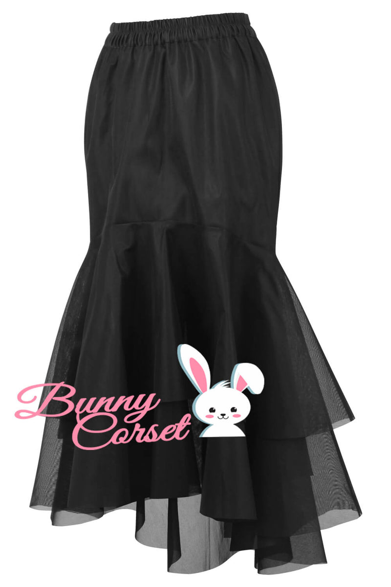 Faith Black Satin & Mesh Net Elasticated Skirt