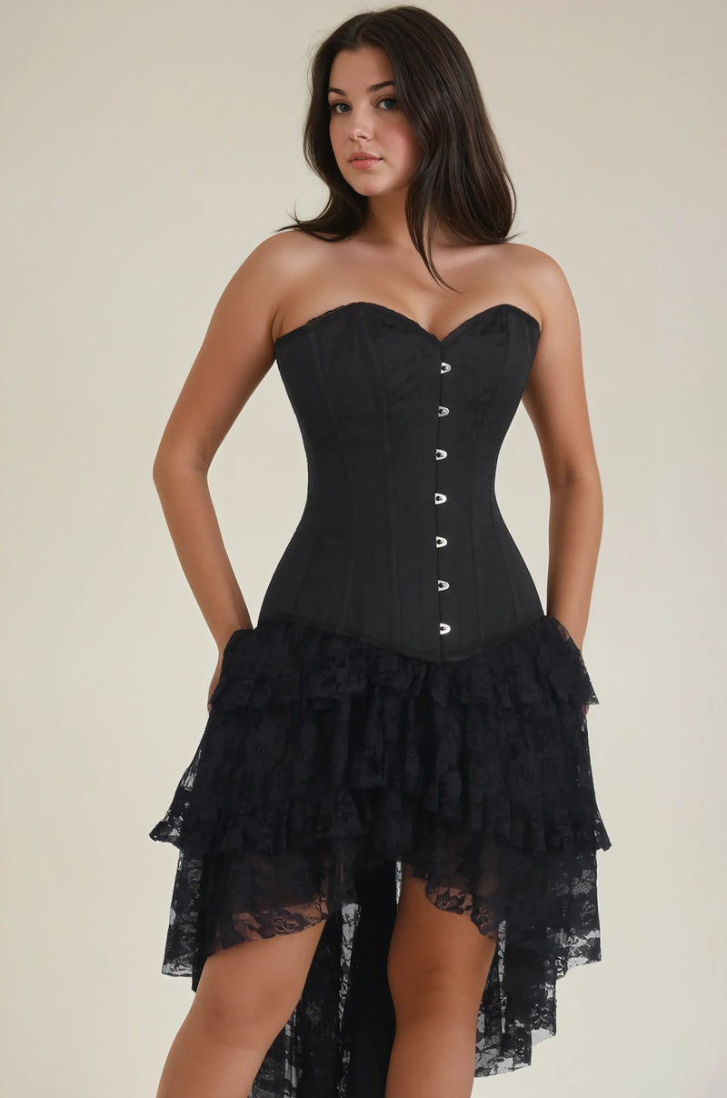Emerie Waist Trainer Black Brocade Curvy Corset